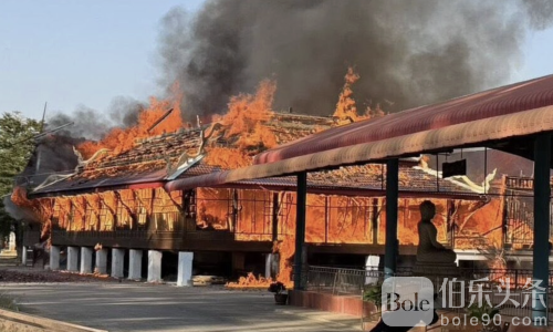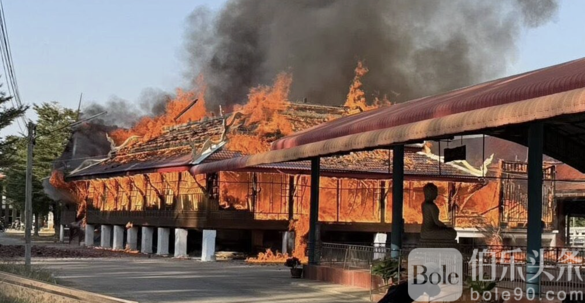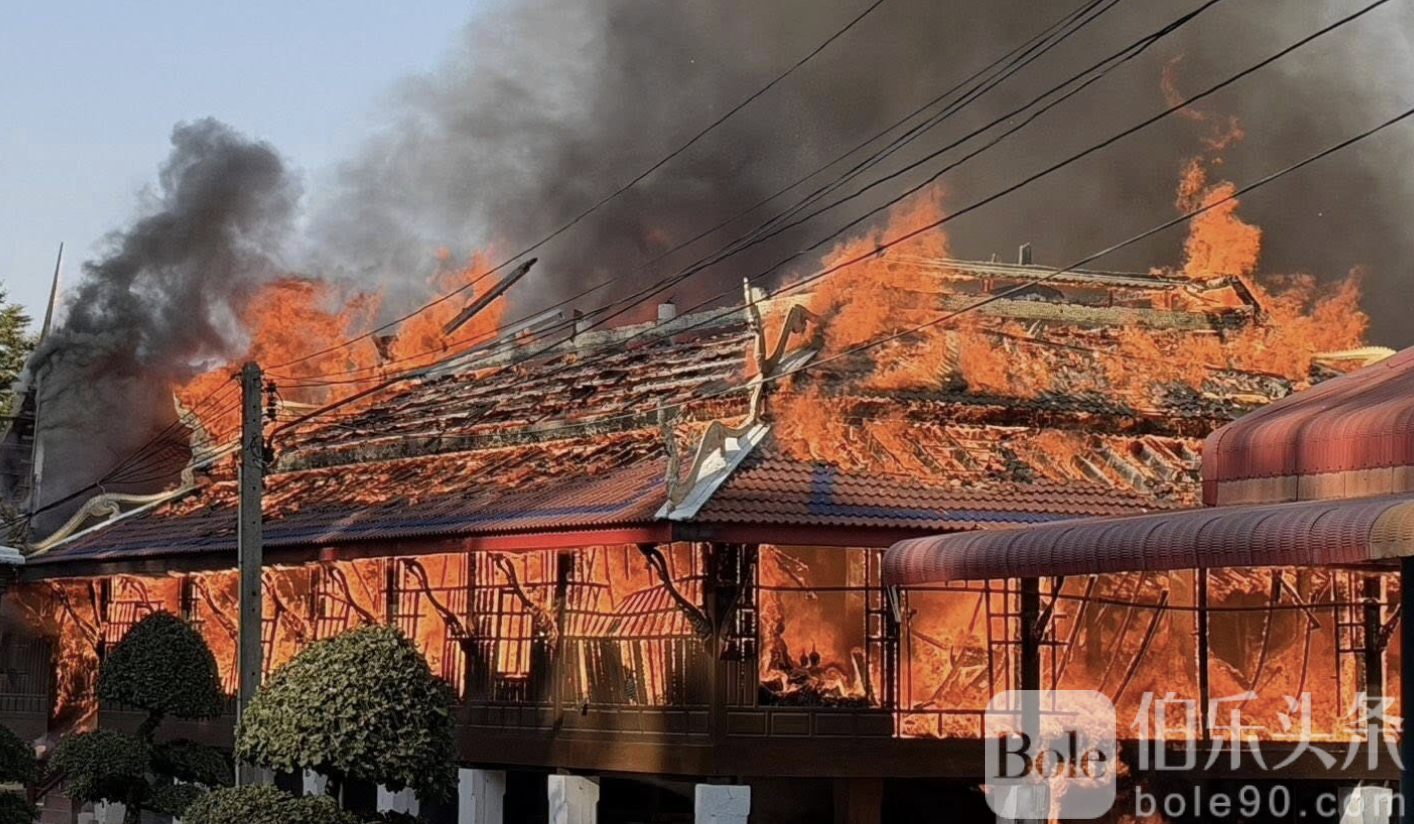伯乐头条专讯:2026年1月13日下午16时,泰国洛披府塔寇寺突发严重火灾,火势猛烈,法堂瞬间被大火吞噬,现场浓烟滚滚,可远距离清晰可见,造成寺内僧侣和周边民众惊慌失措。