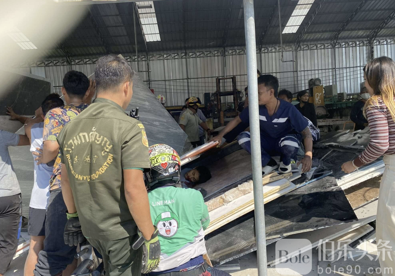 伯乐头条专讯:泰国曼谷一处大理石生产与销售店于1月13日发生严重事故,一名缅甸籍工人在搬运过程中被大量大理石板压倒,最终当场身亡。现场工作人员和救援人员虽然紧急施救,但未能挽回其生命。