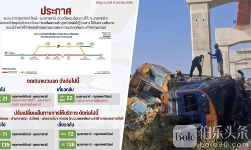 伯乐头条专讯:泰国铁路局日前通报,由于中国-泰国高铁建设项目施工期间,起重机意外坠落,撞击正在行驶的特快列车21号,导致东北方向列车运行受阻,当天共有14趟列车被迫停运或调整行驶路线。