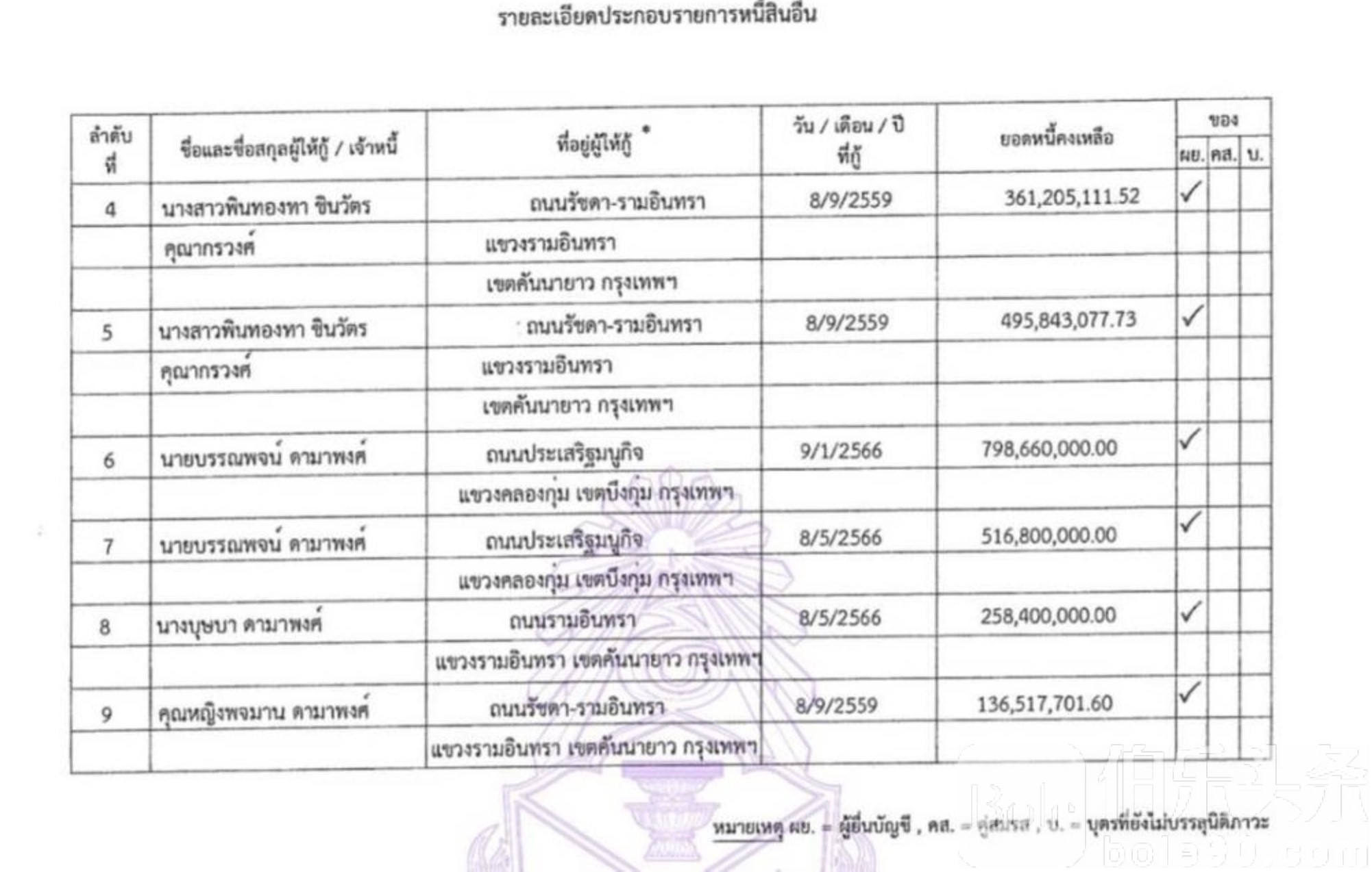 不过,光看资产并不足以勾勒全貌。佩通坦个人负债同样不低,达 44.34亿泰铢,主要来自向母亲、兄长等亲属购买股份时所出具的本票或借据。这部分债务,在此前国会不信任辩论中曾多次被反对派点名质疑,如今仍未清偿。