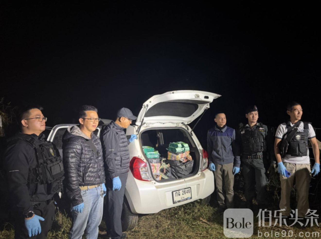 伯乐头条专讯:泰国清莱府边境巡逻警察联合地方执法部门,于2026年1月15日凌晨成功查获一辆疑似运输大量毒品的轿车,但两名嫌疑人利用夜色成功逃脱。此次行动共查获冰毒约80万颗,氯胺酮约20公斤,毒品均用黑色塑料袋包装。警方通过情报掌握,这批毒品计划从清莱边境进入泰国内陆,构成重大跨境毒品运输案件。