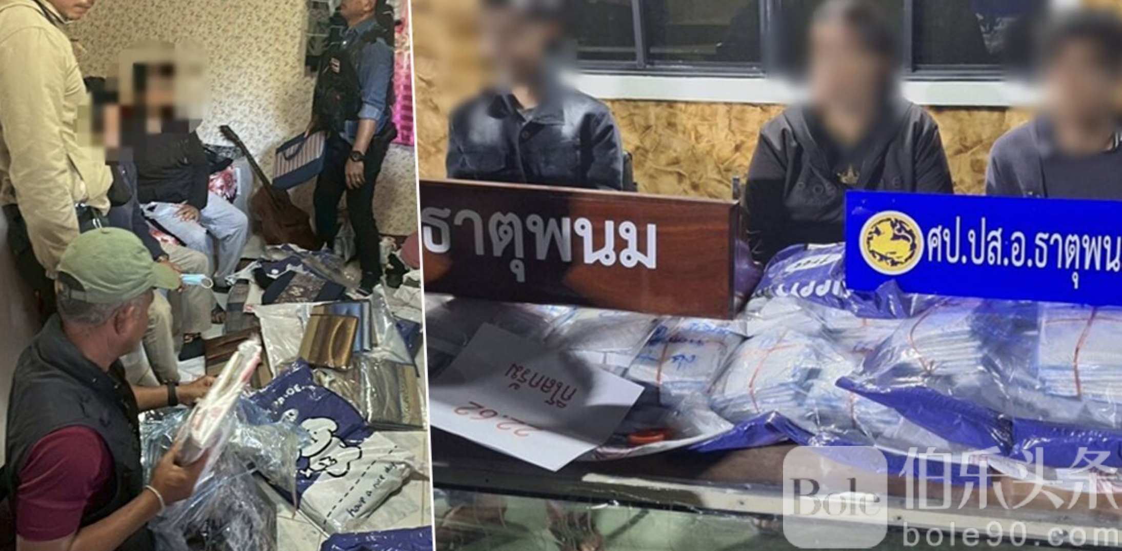伯乐头条专讯:泰国北部头条消息,1月15日,泰国北部纳孔帕农府一处度假村被发现成为海洛因藏匿和中转点,警方在接获线报后展开突击行动,当场查获海洛因32.37公斤,并抓获三名嫌犯,其中两人为泰国籍,一人为老挝籍。
