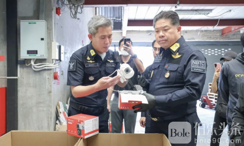 伯乐头条专讯:1月16日,泰国多部门在曼谷Bang Kapi区展开联合执法,一举查获大量未经授权、违规使用无线频率的监控设备及非法进口SIM卡。此次行动由国家广播电视与电信委员会牵头,联合技术犯罪调查局、海关总局、消费税局、个人数据保护委员会以及消费者保护委员会同步推进,目标直指一家涉嫌销售、安装非法无线监控设备的商家。执法人员现场扣押涉案物品,并将相关嫌疑人带回调查。