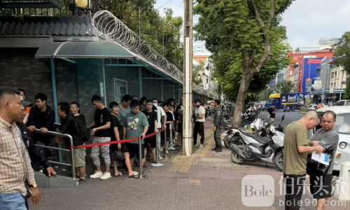 伯乐头条专讯:2026年1月19日,柬埔寨首都金边中国驻大使馆门前依然排起长龙,大量来自西港、木牌、财通、马德望等电诈园区的人员(俗称“狗推”)等待办理回国证件。现场目击者表示,排队人数太多,队伍几乎叠成两层。