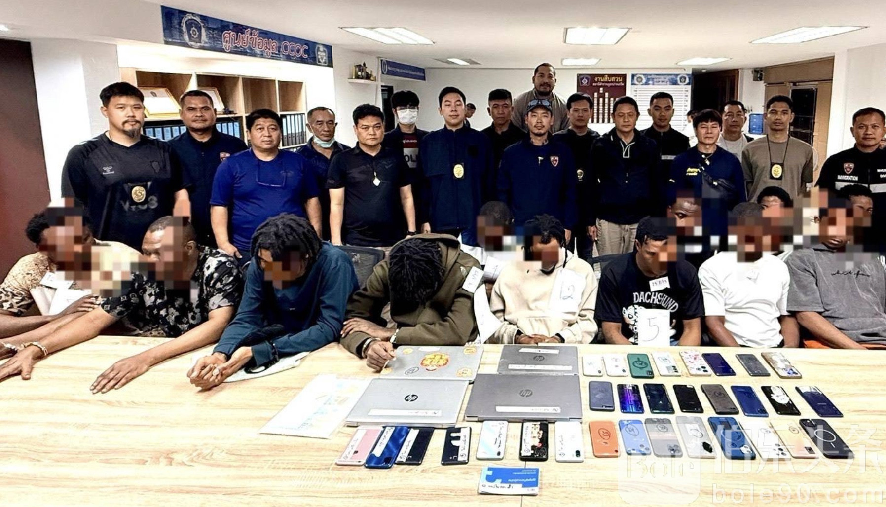 1月19日,警方又在暖武里府Pak Kret县捣毁一个典型“杀猪盘”诈骗团伙,抓获13人,其中尼日利亚籍11人、科特迪瓦籍2人,涉案金额超过200万泰铢,受害者遍布廊开府及曼谷地区。