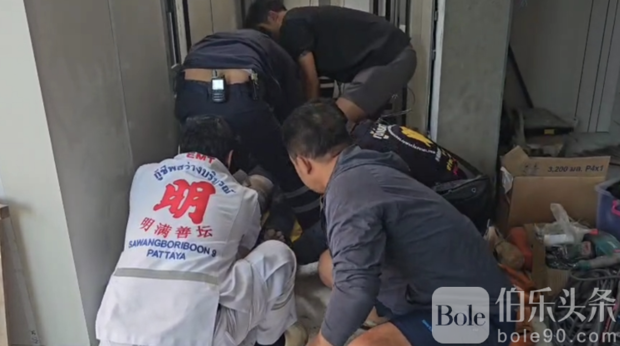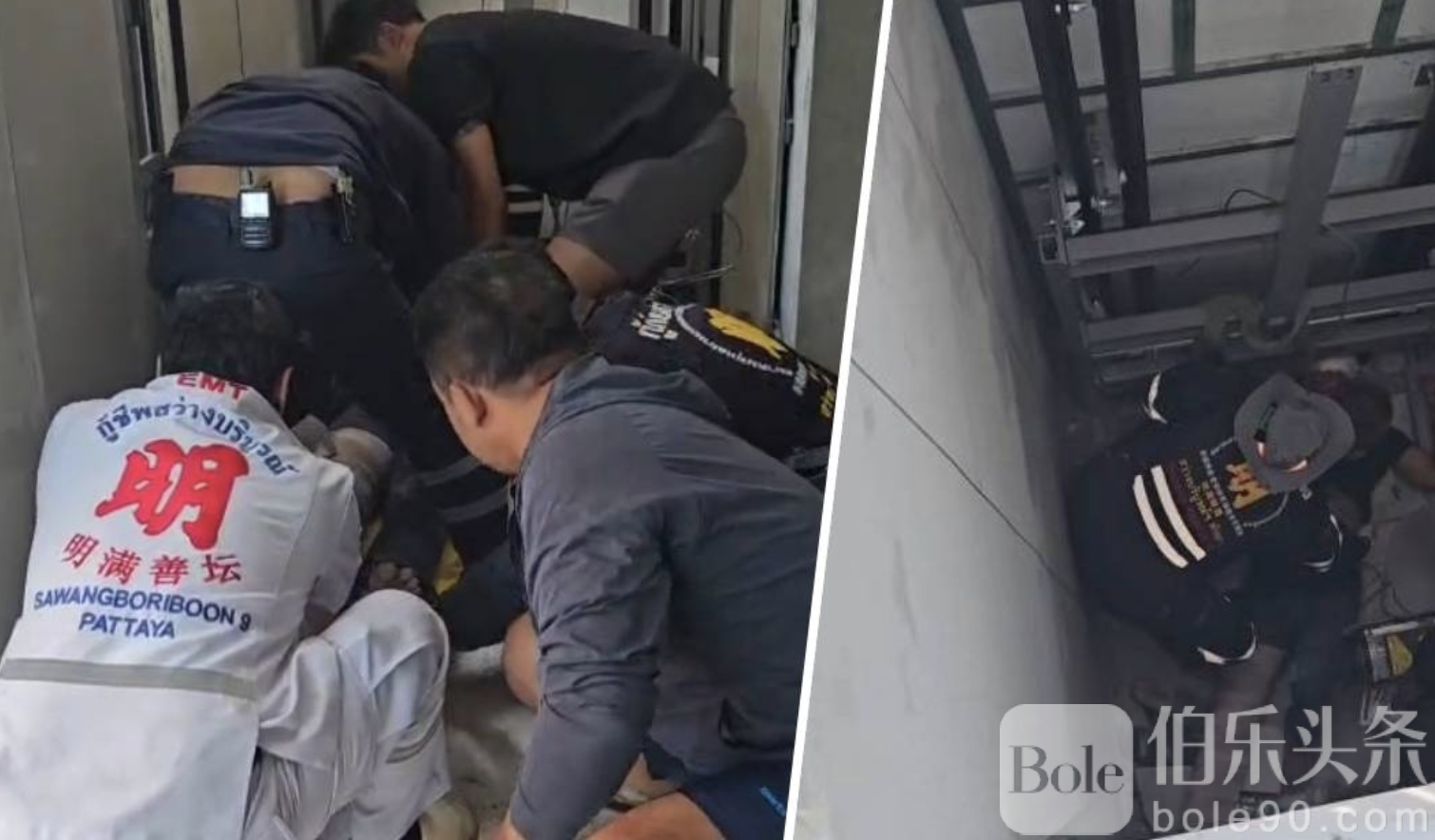 伯乐头条专讯:泰国春武里府邦拉蒙区一栋三层楼施工工地今晨发生严重事故,一部施工升降机因钢丝绳断裂从三楼坠落,导致工人27岁男子受伤严重。
