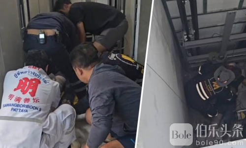 惊险一幕!泰国三层楼施工升降机钢丝绳断裂,工人重伤
