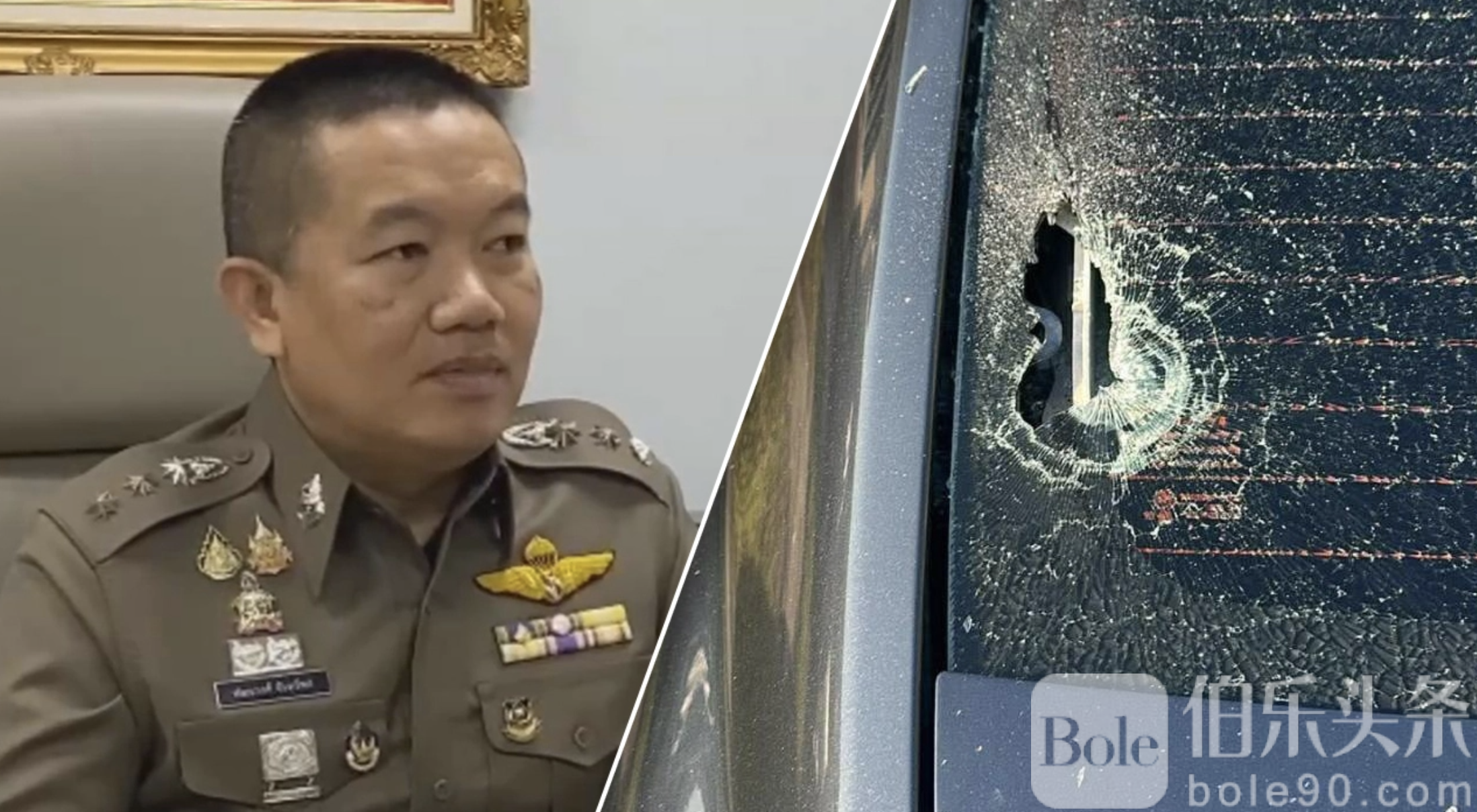 伯乐头条专讯:1月25日下午16时24分,泰国乌东他尼府发生一起涉及军人的持枪袭击事件。事件中,一名军方士兵驾驶轿车至网红“乌姆·潘素”姐夫的住宅前,对其进行言语威胁并拔枪射击,所幸未击中目标人身,子弹仅击中停放在屋前的一辆黑色丰田雅力士后玻璃,造成破损。