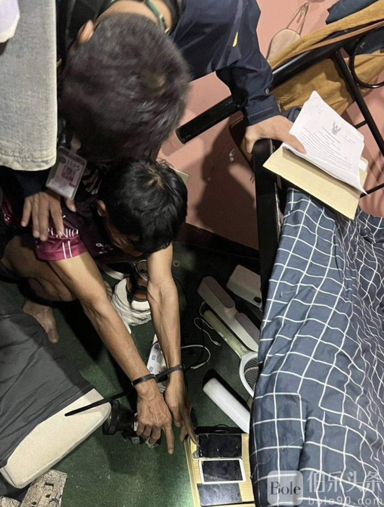 此次行动在曼谷大都会警察总部高层直接指挥下进行,警方经过长时间跟踪调查、分析资金流向与人际网络后,成功取得南曼谷刑事法院签发的搜查令。执法人员随后对位于素坤逸四十六巷、三十七号酒店后方的一处无门牌单层木屋展开包围与搜查。