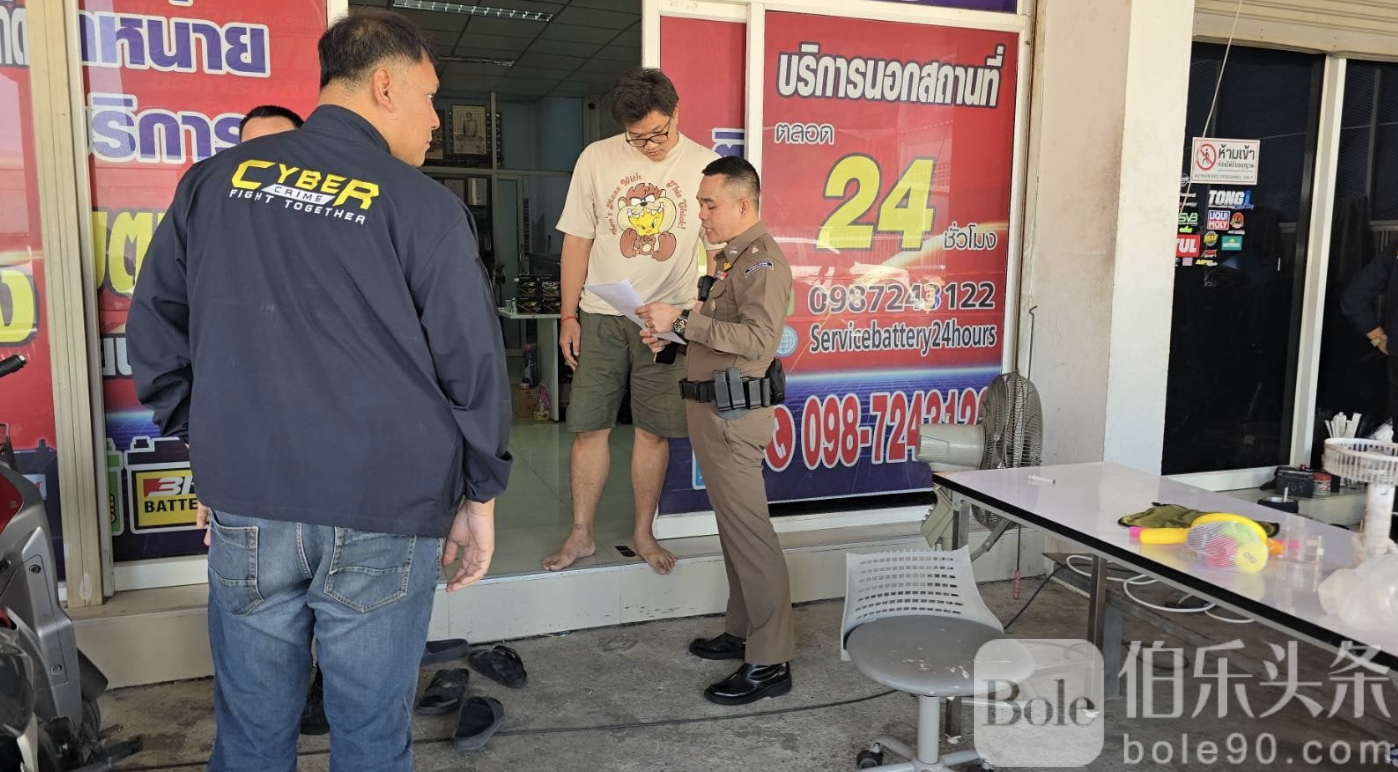 伯乐头条专讯:泰国网络警察近日在曼谷廊曼区展开突击行动,捣毁一家以“汽车电池店”为掩护的网络赌场洗钱据点,当场查获现金380万泰铢及多项金融工具,并抓获两名负责资金运作的嫌疑人,揭开一个地下网络赌场长期运作的黑金通道。