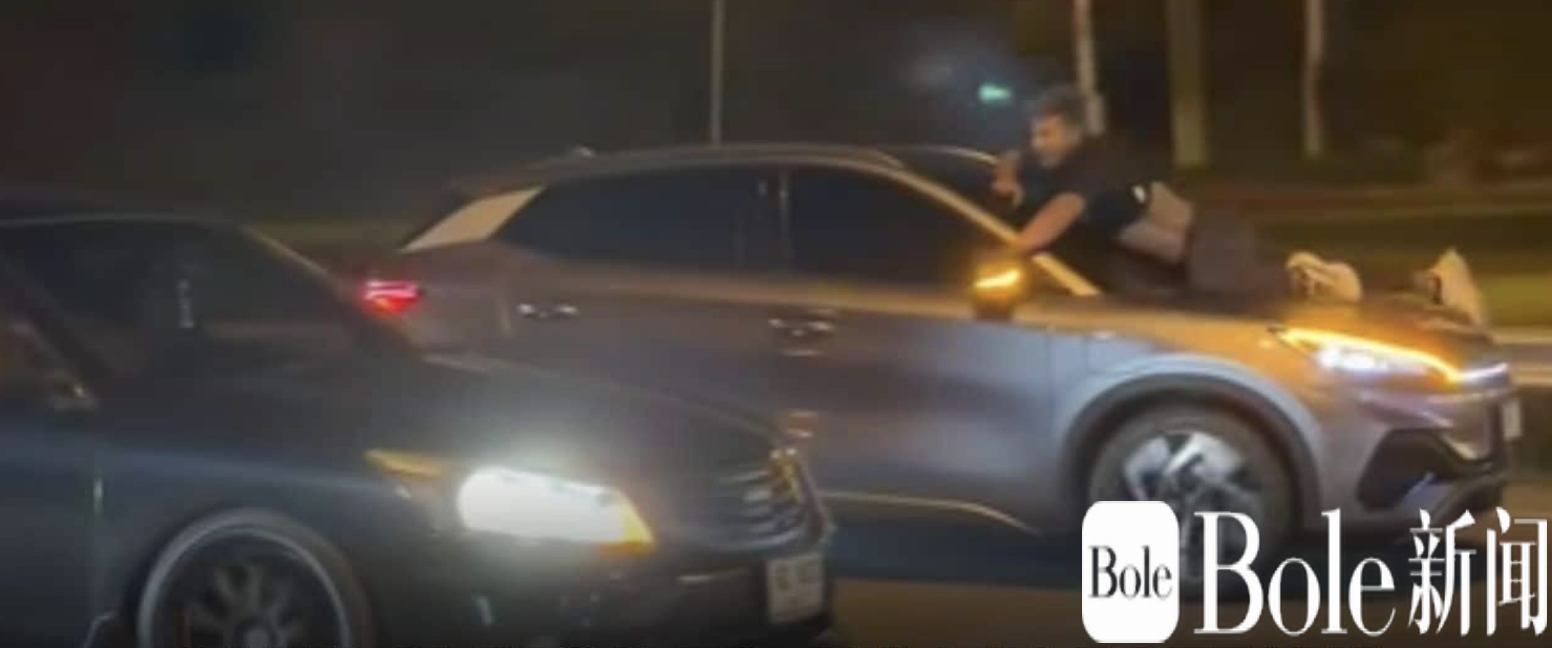 Bole新闻专讯:泰国芭提雅近日在社交媒体上引发巨大关注,一段惊险视频显示,一名泰国男子紧紧趴在一辆正在行驶的灰色电动越野车车头上,疑似为阻止偷车者将自己的车辆开走,画面宛如电影场景,令人捏一把冷汗。