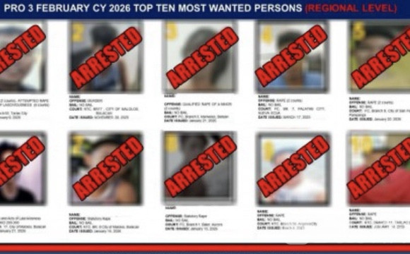 Bole新闻专讯:菲律宾警方在中吕宋地区打出一场“速度战”。警方第三区域办公室(PRO-3)通报,从2月1日至3日,仅用72小时,便成功抓获2026年2月“区域级十大通缉要犯”名单上的全部10人,涉案罪名包括强奸、谋杀等严重刑事犯罪。