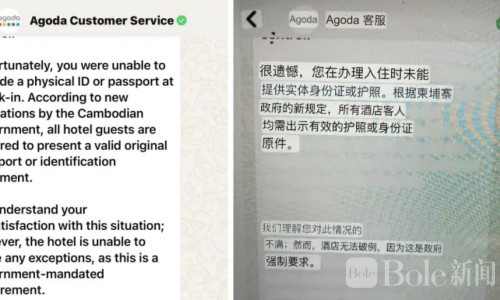 老李还向记者展示了与Agoda客服的沟通记录,客服表示:“根据柬埔寨政府的新规定,所有酒店客人必须出示有效护照或身份证原件,这是政府的强制要求。”