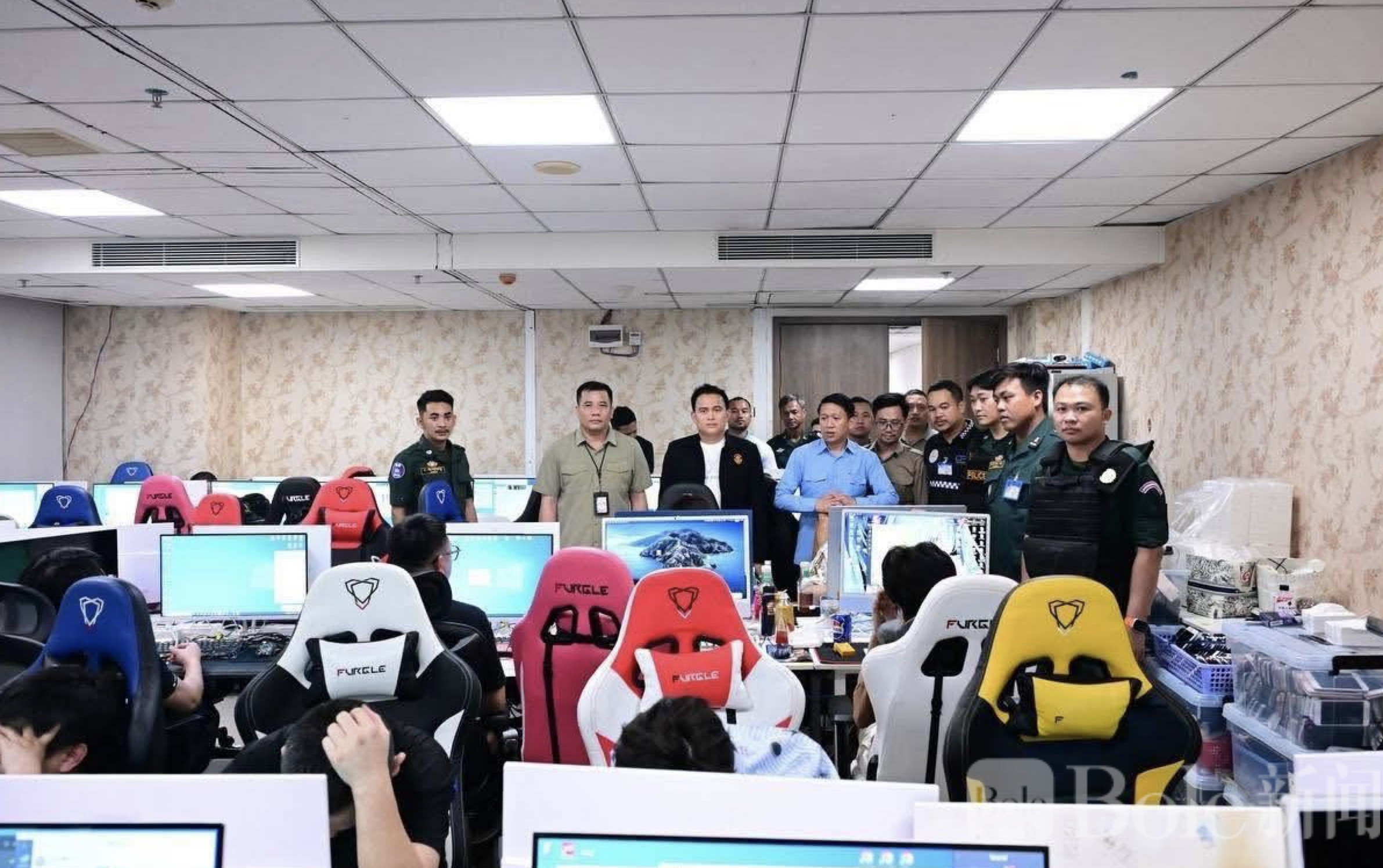 Bole新闻专讯:2月10日上午,西港省统一指挥委员会调集多部门执法力量,对位于西港第4分区第4村的金狮赌场展开突击检查。行动节奏紧凑、部署周密,执法人员直奔目标楼层,对大楼第18层和第19层进行全面排查,现场气氛一度相当紧张。