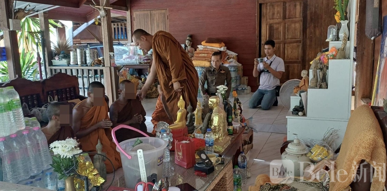 Bole新闻专讯:泰国素叻他尼府班纳萨警方近日突击检查当地一知名寺庙,发现4名和尚尿检呈阳性,承认吸食冰毒并参与网络赌博。警方随即对他们进行剃度处理,并将其送往医院确认检测结果,同时依法对吸毒行为立案调查。