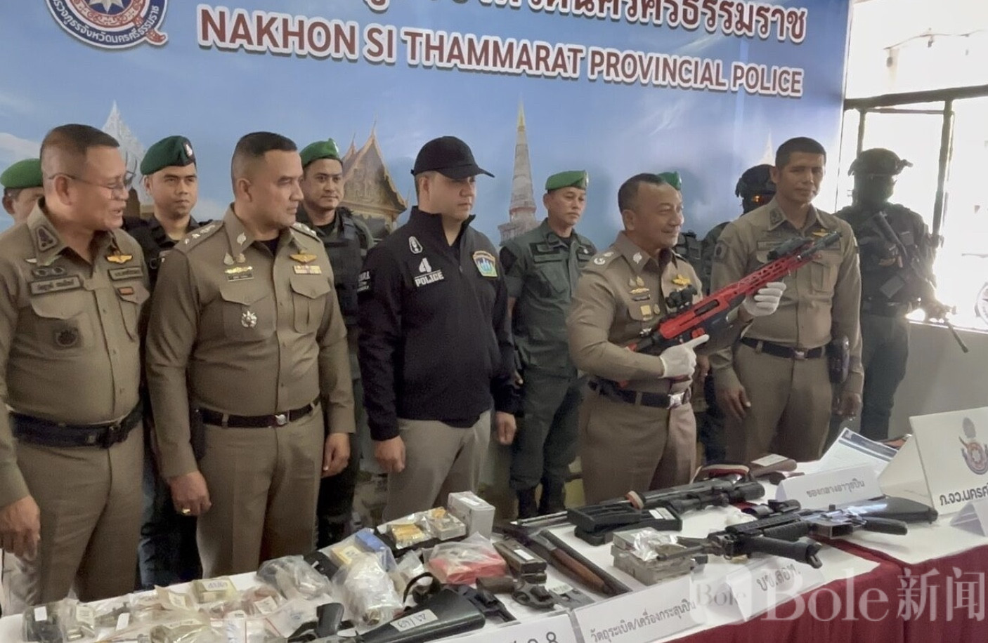 Bole新闻专讯:泰国警方儿童与妇女保护科(กก.ดส.)近日在南部นครศรีธรรมราช展开果断行动,成功抓获4名涉案嫌犯,摧毁一条大型武器贩卖网络,缴获数量可媲美小型军火库的武器与爆炸物。