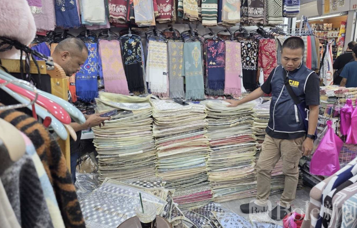 Bole新闻专讯:泰国曼谷知名旅游商圈普通纳市场近日发生重大假货抓捕行动,警方查获中国投资商利用外籍劳工销售假冒奢侈品,诈骗游客,总计缴获假冒商品241件。
