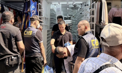 据警方介绍,2月14日,泰国刑事调查警察局在局长指示下,由下属负责人带队,对普通纳市场进行突击检查,抓获涉嫌违法的中国商人1名及两名缅甸籍劳工,查获假冒LV、Dior、Valentino及Gucci等品牌服装237件,以及12款假冒品牌眼镜,共计241件。