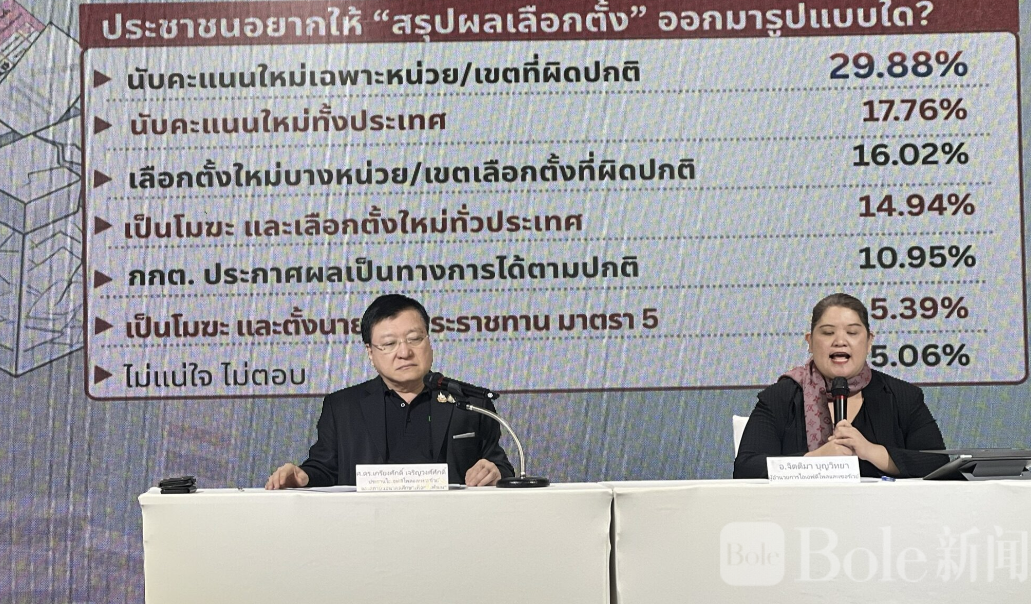 Bole新闻专讯:2026年2月15日,泰国最新一项全国性民意调查引爆社会舆论风暴,高达83.99%的受访民众明确表示,当前选举结果必须重新审查,包括重新计票、重新选举、宣布无效,甚至启用宪法第5条的非常规方案,这一数字被视为对现行选举制度投下的“强烈不信任票”。