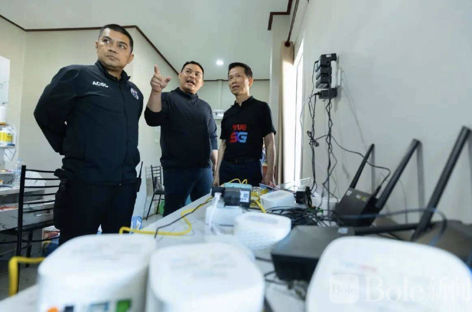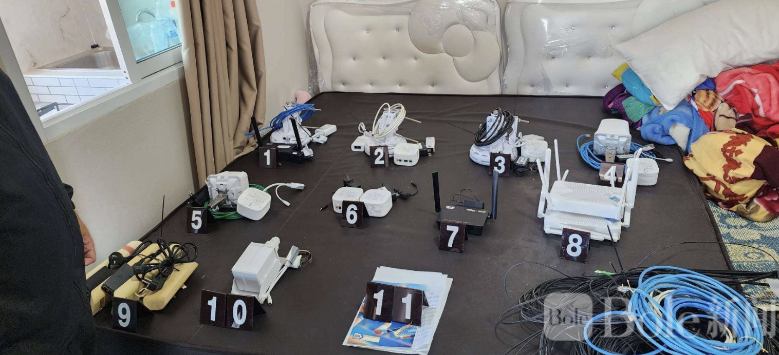 Bole新闻专讯:泰国警方联合多部门在泰缅边境展开雷霆行动,成功捣毁一处专门向缅甸诈骗集团输送高速网络信号的“黑网中转站”,当场查获大量跨境通信设备,并拘捕2名涉案人员,重创跨国电信诈骗的“命脉系统”。