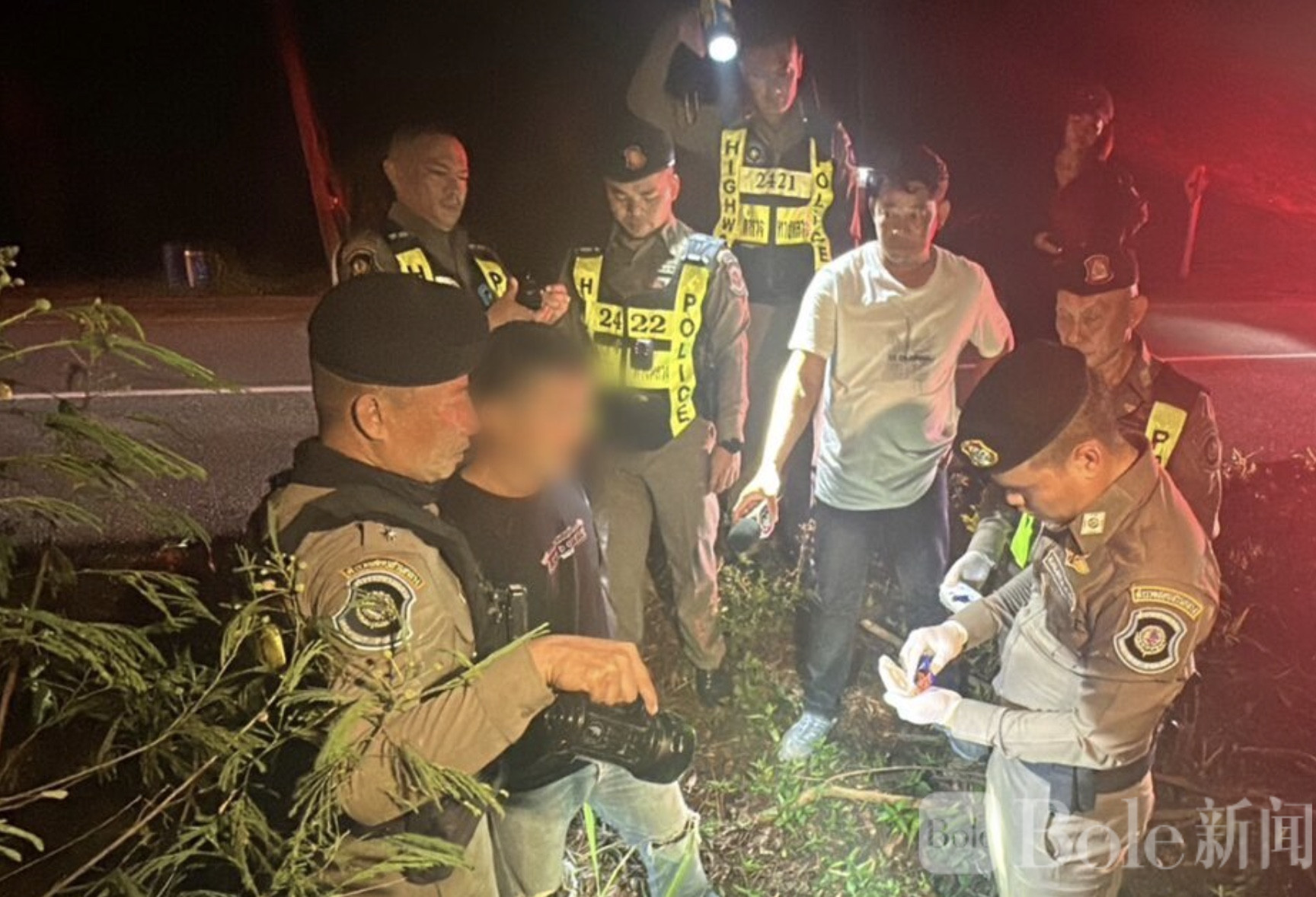 Bole新闻专讯:泰国春蓬府(Chumphon)发生一起惊险追捕事件,一名46岁男子驾驶黑色丰田Vigo皮卡冲过路检点,企图甩掉执法人员,途中甚至将所藏毒品丢出车窗,最终在死路中被警方抓获。