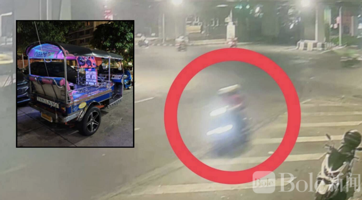 Bole新闻专讯:曼谷市中心2月25日凌晨发生飞车抢劫案,两名男子骑摩托车尾随一辆嘟嘟车,突然出手抢走一名香港女游客的随身包后迅速逃逸,引发关注。
