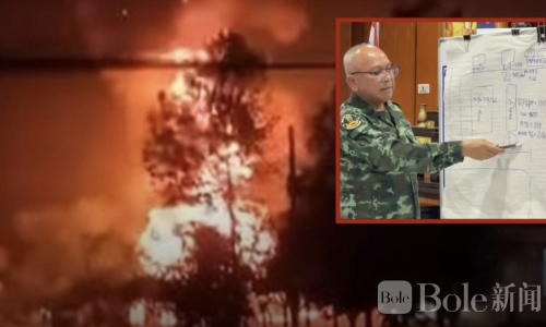 Bole新闻专讯:泰国素林府边境警察第21营弹药库于2月25日凌晨发生爆炸,现场一名警员受伤已送往威拉瓦特约廷营医院救治,其余警员及营区家属紧急撤离。事故造成RPG、步枪子弹及小口径子弹库严重损毁,火势一度蔓延至邻近的小型弹药储存区,当局已宣布周边为危险区域并持续高强度监控。