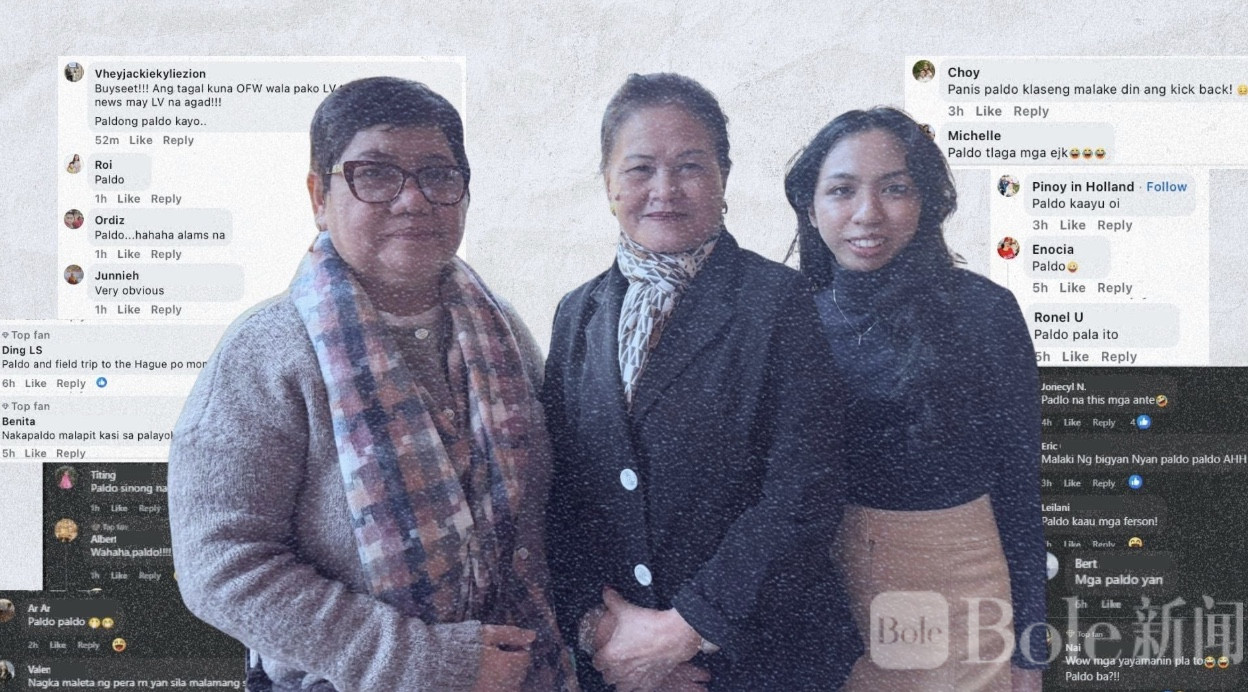 有趣的是,这些造假图片甚至被转发至与ICC或政治无关的群组,包括Shopee购物群、TikTok折扣群以及公立学校教师群体,扩大了传播范围。评论区则充斥着讥讽和质疑,菲律宾中部方言中“paldo”(意指突然变富)成为热词,网友们还调侃这些家属是“毒品战争的富二代”,讽刺其“欧洲之旅是税金资助”。