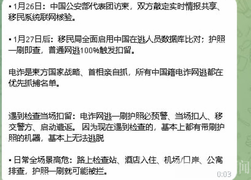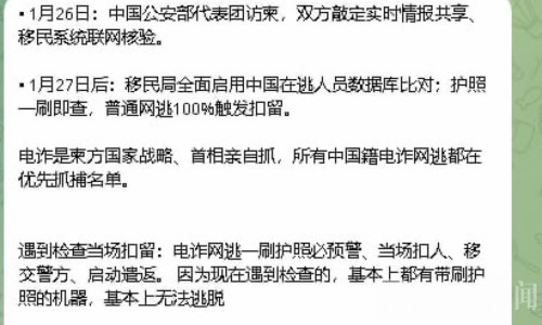 Bole新闻专讯:近期,中国公安部代表团访问柬埔寨,两国正式敲定实时情报共享协议,并将移民系统联网核验。这意味着,从1月27日起,柬埔寨移民局全面启用中国在逃人员数据库比对系统——任何中国籍在逃人员,只要护照一刷,几乎都会触发警示,普通网逃100%可能被现场扣留。