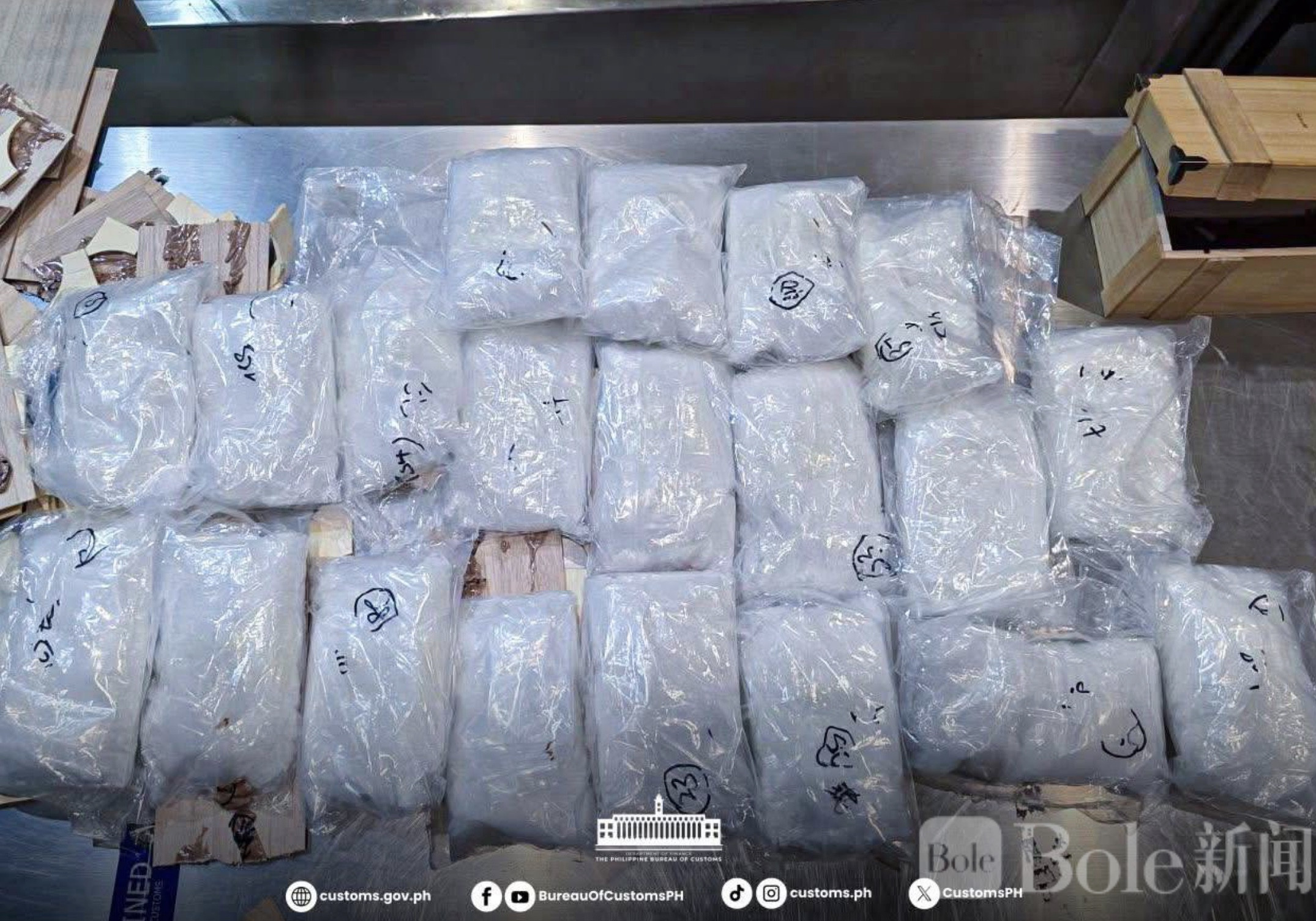 Bole新闻专讯:菲律宾海关局近日通报,一起重大毒品走私案在尼诺伊·阿基诺国际机场一号航站楼被成功侦破。2月28日,海关人员在风险筛查中对一名马来西亚籍旅客的托运行李进行开箱检查,意外发现内藏约16.526公斤白色晶体物质,经初步判断疑似为甲基苯丙胺,也就是俗称的“冰毒”。按市场估值,这批毒品总价值高达约1.12亿比索。