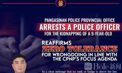 Bole新闻专讯:菲律宾一名现役警察因涉嫌绑架一名9岁女童,于2月26日在邦阿西楠省被警方逮捕,目前已被拘押,案件已移送检察机关进一步处理。消息一出,在当地社会引发不小震动——毕竟,涉案人员的身份本应是守护者。