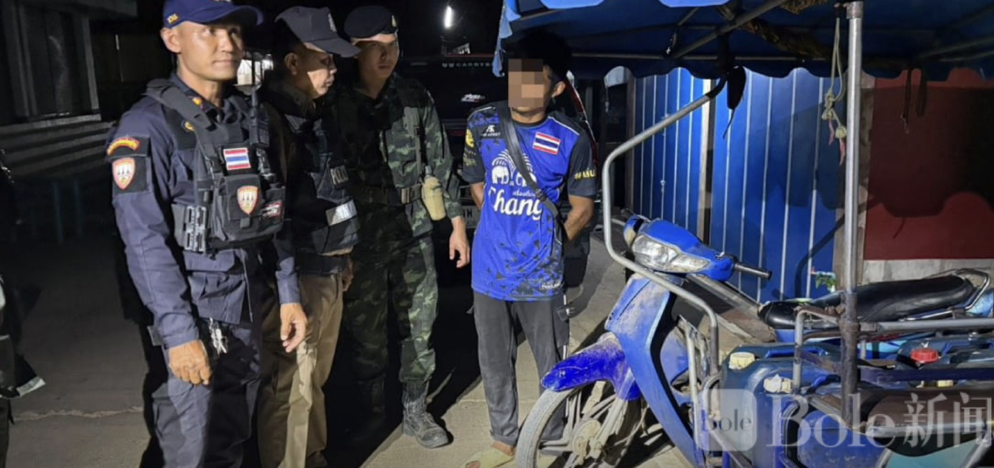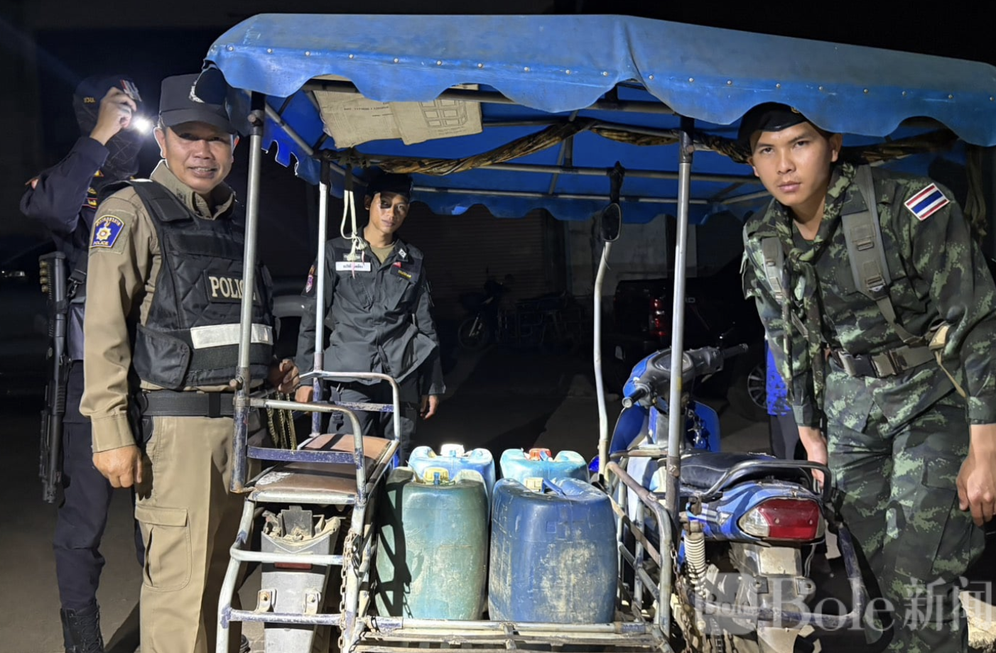 Bole新闻专讯:泰国西部与缅甸接壤的边境地区近日展开打击走私行动。3月10日,泰国北碧府桑卡拉武里县安全部门在著名边境口岸“三塔关口”一带成功截获一起非法柴油跨境运输案件,一名缅甸男子当场被捕,警方同时缴获约120升柴油作为证物。