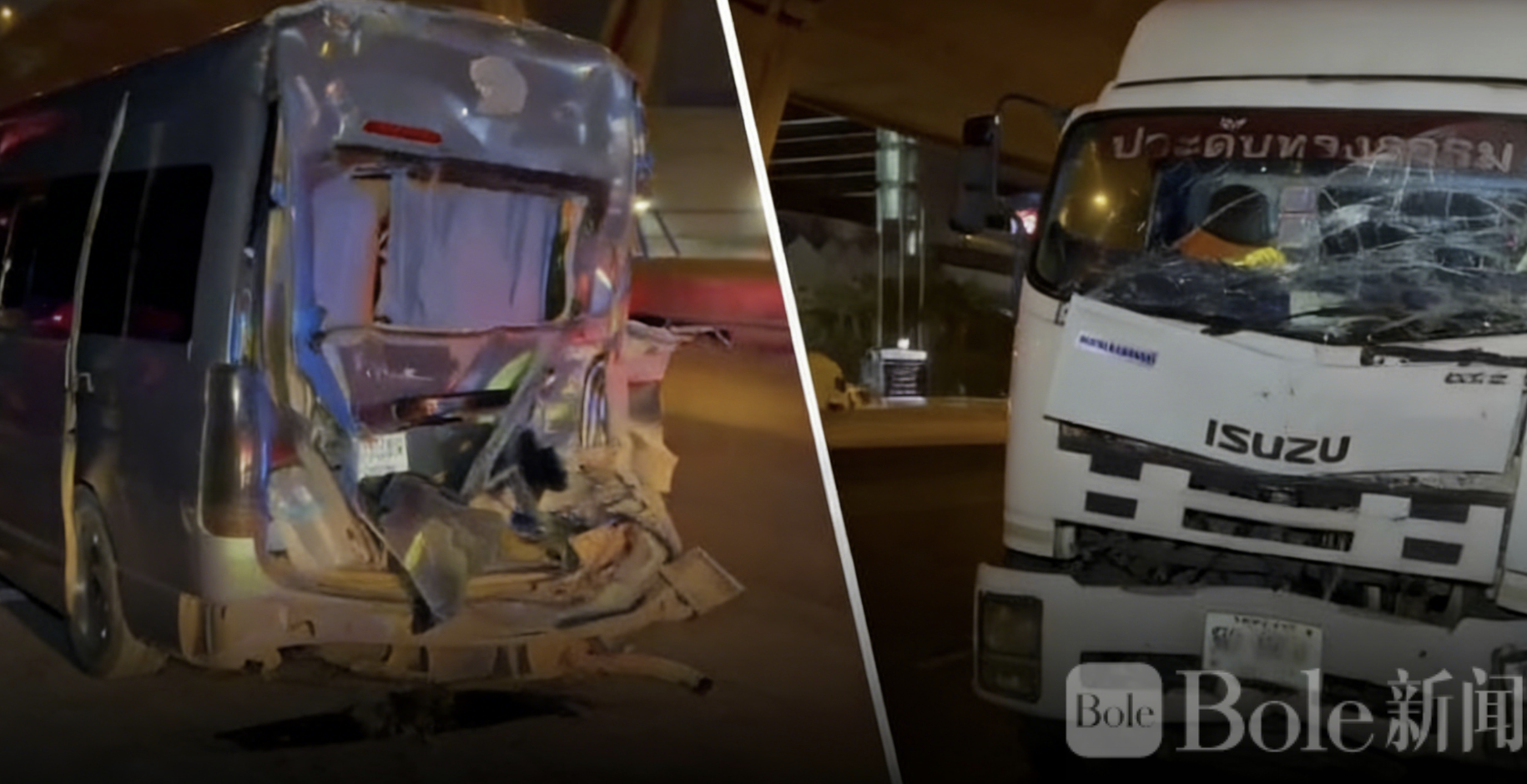 Bole新闻专讯:3月10日泰国沙吞府Bangna-Trat高速公路发生严重追尾事故,一辆22轮大货车撞上正载客自考拉差府往曼谷方向行驶的小巴,造成11人受伤,其中1人伤势严重。