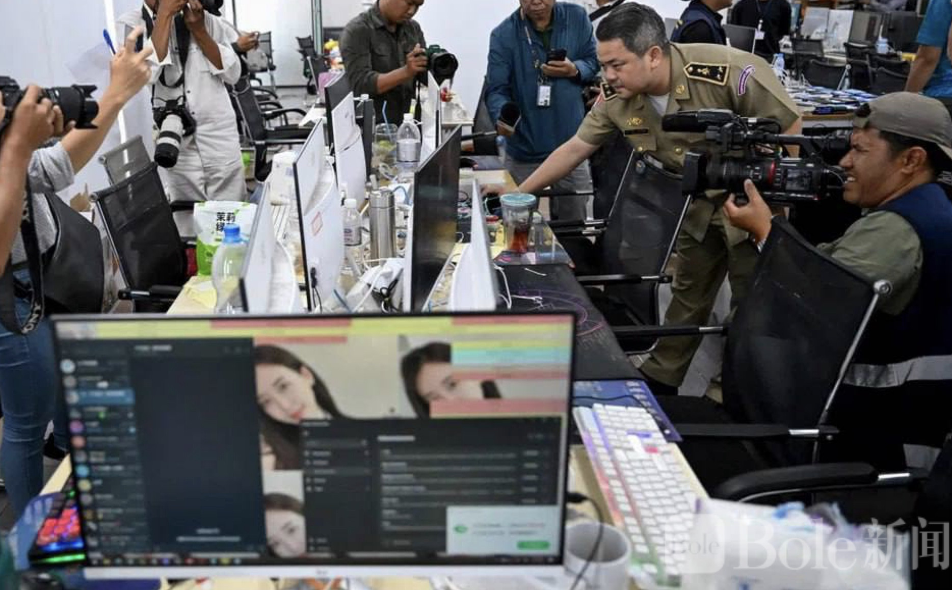 Bole新闻专讯:柬埔寨警方近日在首都Phnom Penh展开突击行动,端掉一处隐藏在市区建筑内的网络诈骗中心,当场逮捕数十名涉案人员,其中包括多名中国籍组织者。警方在现场发现,这个诈骗窝点几乎像个“工厂化运作”的办公室:每间办公桌上摆满电脑和通讯设备,每台电脑绑定多个社交账号,员工按时间上线与受害者聊天,并详细记录“业绩”,整个流程井然有序,几乎让人怀疑走进了某种现代化作案流水线。
