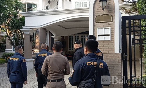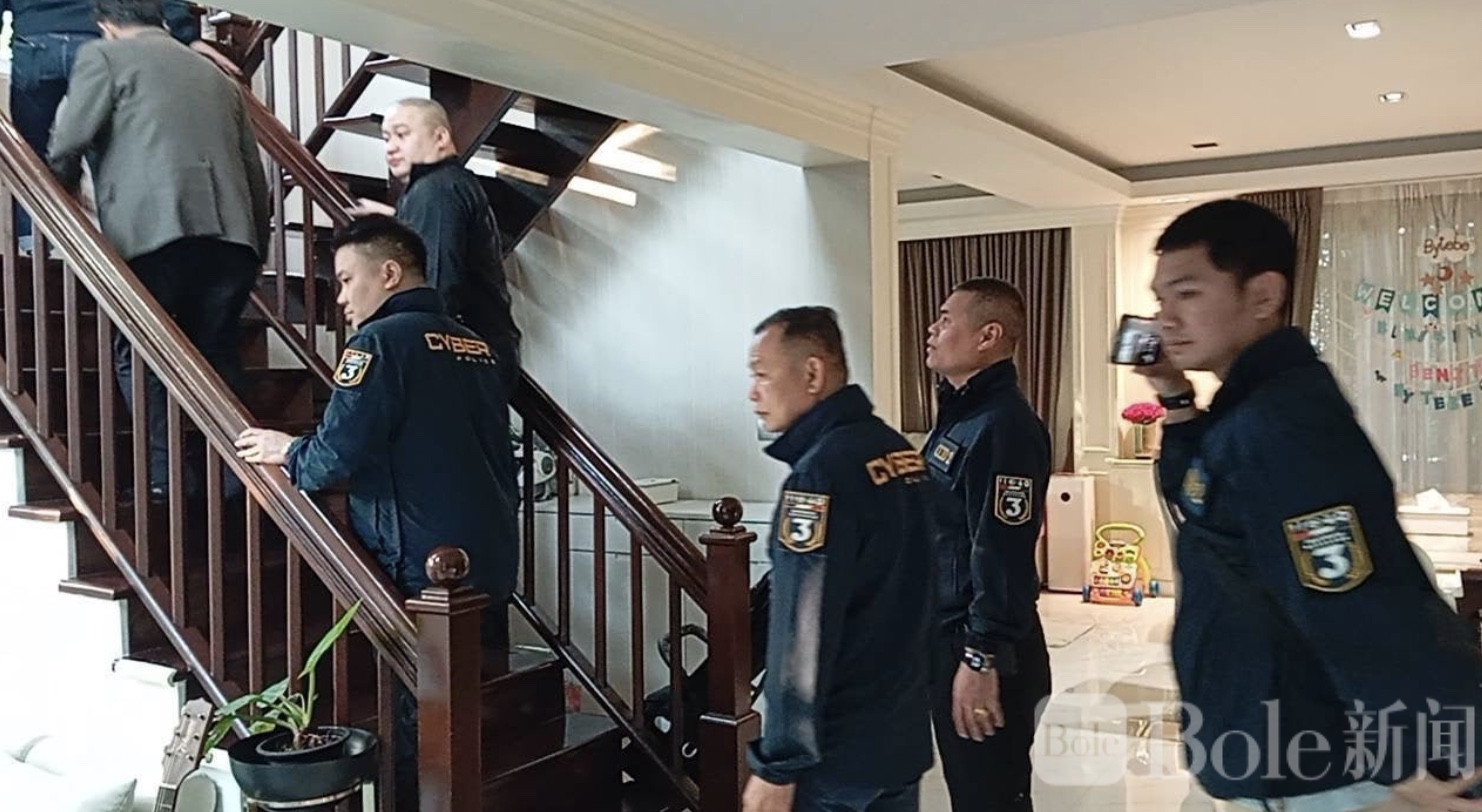 Bole新闻专讯:泰国警方近日展开大规模突击行动,持法院搜查令对位于北榄府诗纳卡琳路一处住宅进行搜查。该住宅被指是某府级行政机构主席秘书兄长的住处兼办公地点,而其家族成员此前已因涉嫌参与投资诈骗及洗钱案件被警方逮捕,案件金额接近400万泰铢。