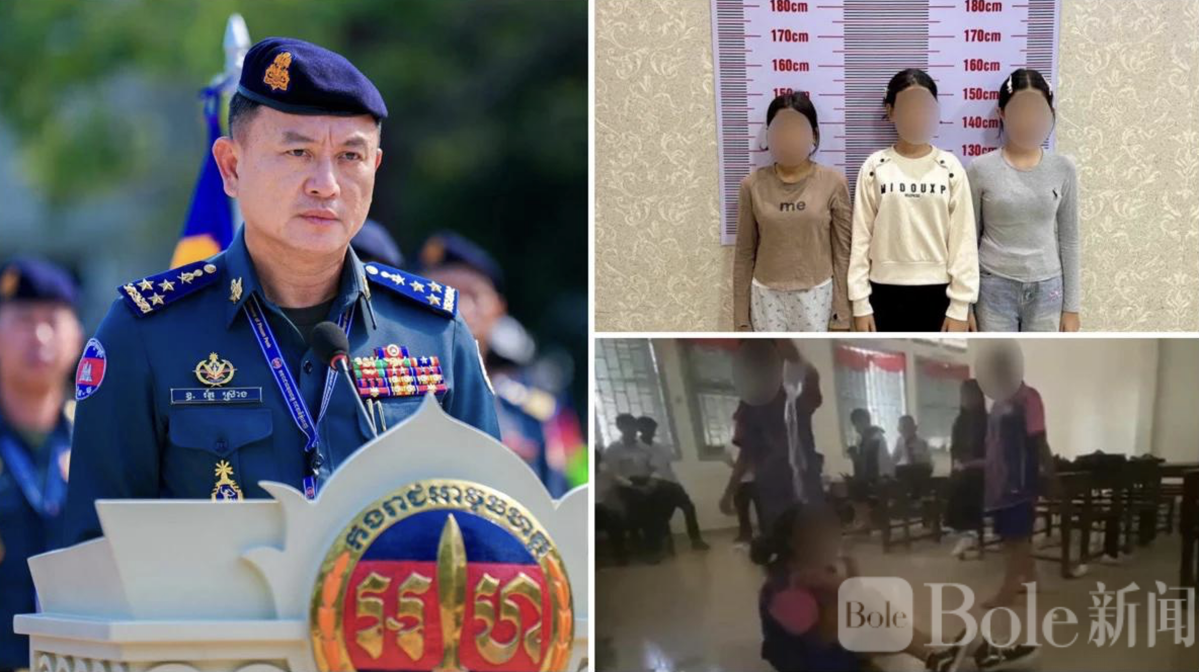 Bole新闻专讯:柬埔寨金边近日发生一起校园霸凌事件,一段三名女学生围殴同班同学的视频在社交媒体广泛传播,引发社会强烈关注与愤慨。面对公众质疑为何涉案学生未被拘留,金边宪兵司令罗斯祥于16日公开回应,并解释相关法律依据。
