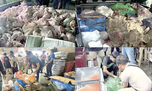 Bole新闻专讯:3月19日清晨,菲律宾肉品检验署联合警方刑侦大队,在帕赛市公共市场展开例行检查行动,现场查获约2吨处理不当的冷冻肉类以及200多只未经检验的鸡只。这些被称为“黑市肉”的产品,因未经过正规检验与合规流通渠道,被当场查扣并统一处理。