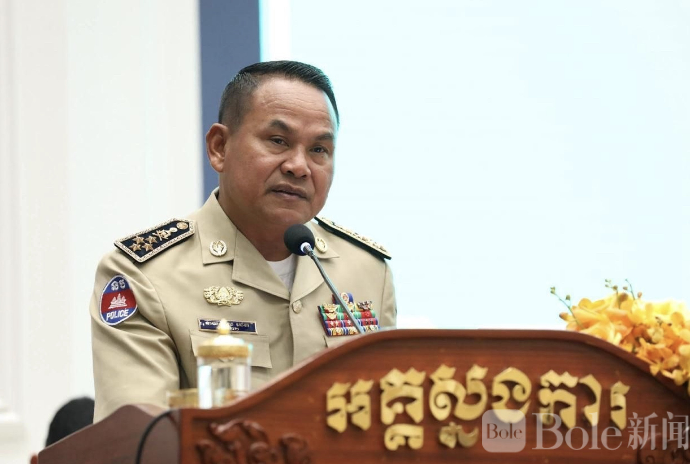 Bole新闻专讯:昨天下午,柬埔寨国家警察总署总监苏通在主持高级警官就职仪式时向全警发布了明确而严厉的指令——必须坚决落实洪玛奈总理的命令,彻底打击网络诈骗,以修复和提升柬埔寨在国际社会中的声誉。