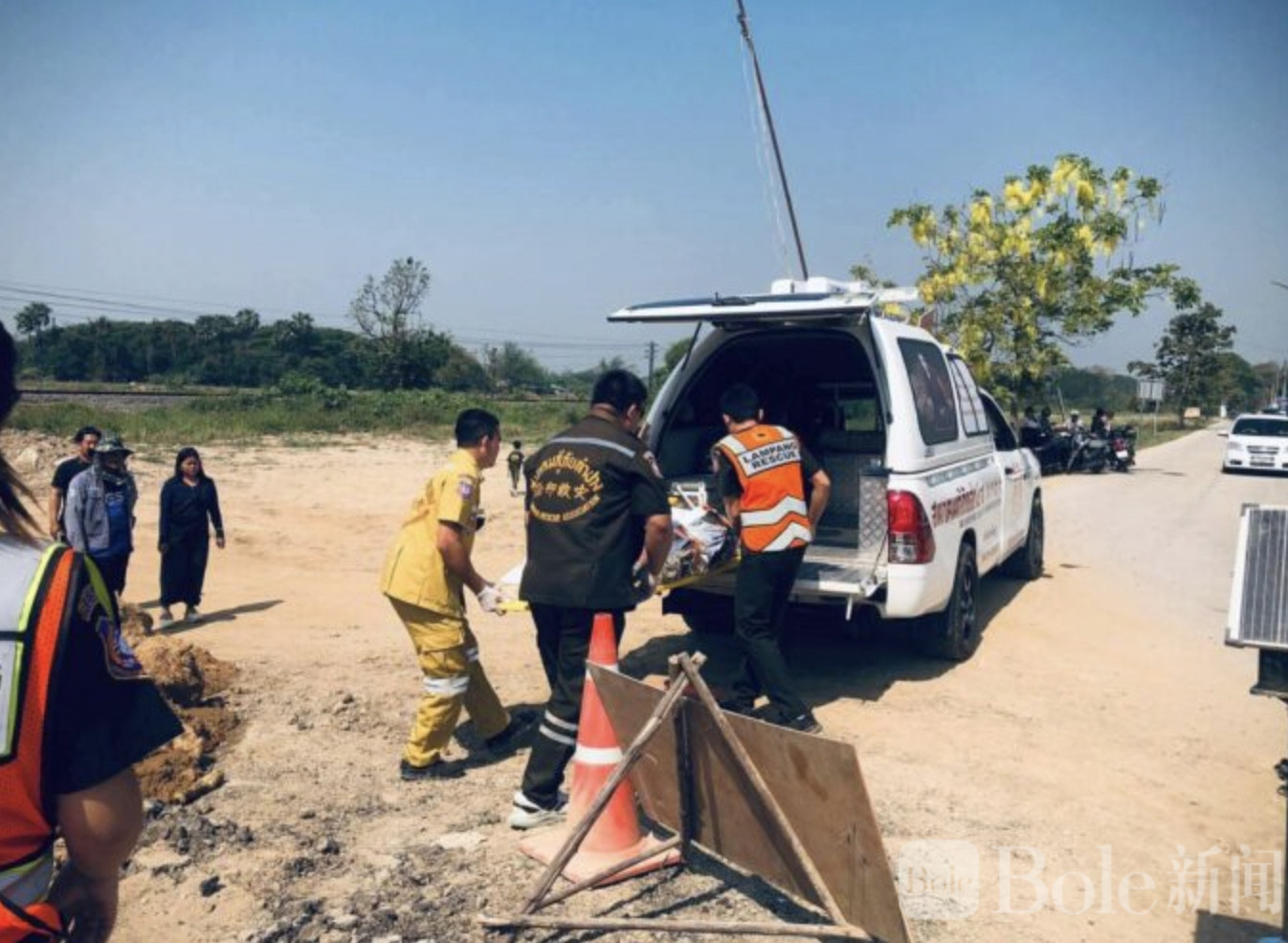 Bole新闻专讯:泰国北部兰拍府一名55岁男子近日在环路施工区域骑摩托车时不幸坠入施工坑,最终因头部重创当场身亡。事故疑似发生在夜间,事发路段因施工设有临时绕行,但可能未被发现或未按指示行驶,导致摩托车直接冲入为支撑桥墩而挖的深坑。