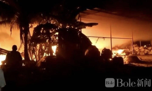Bole新闻专讯:泰国罗勇府一处回收工厂25日凌晨突发火灾,火势一度失控,伴随着接连不断的爆炸声,现场火光冲天、浓烟翻滚,救援人员鏖战一个多小时才勉强将火势压制住。
