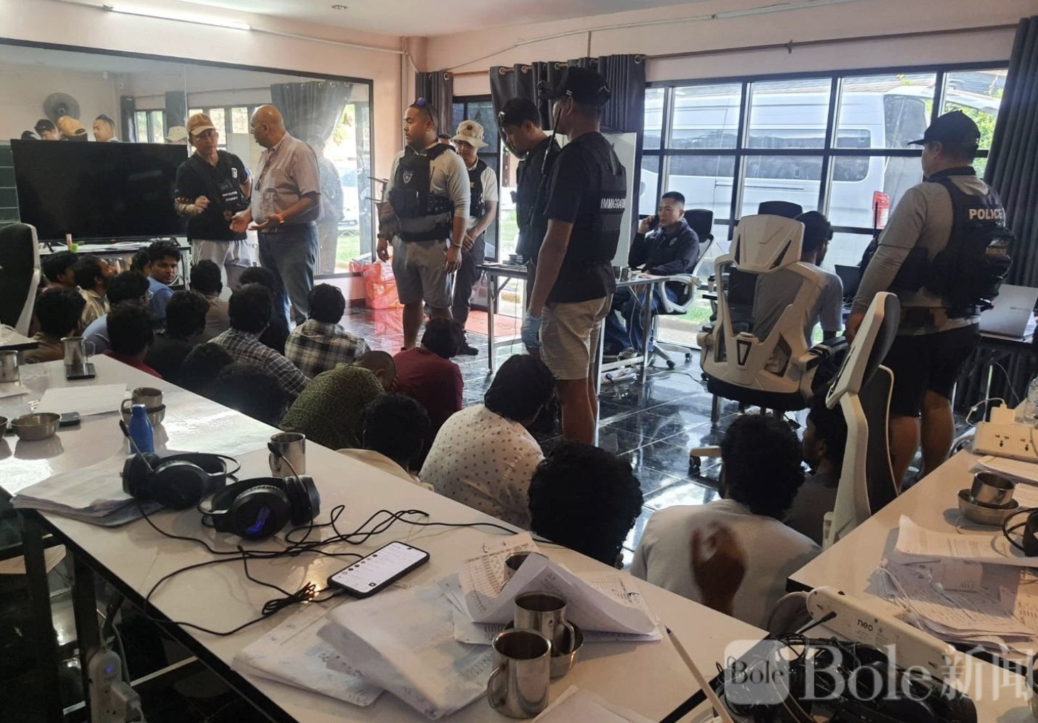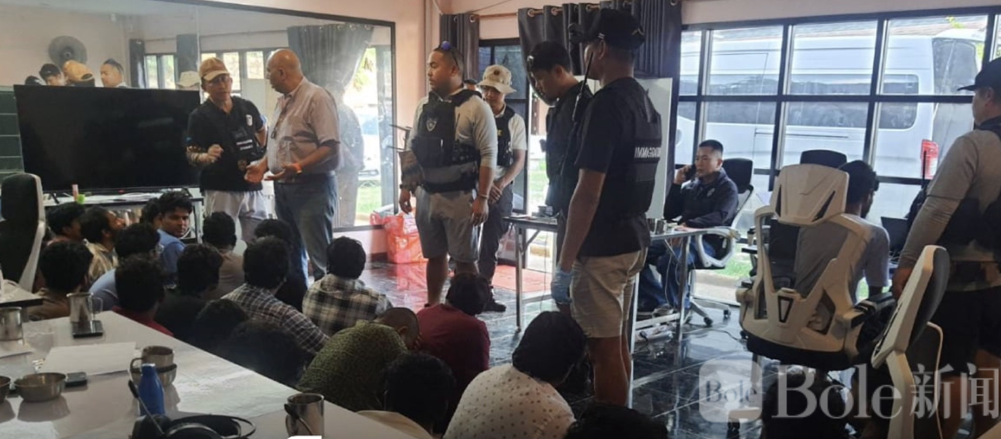 Bole新闻专讯:泰国芭提雅,一幢豪华别墅近日成为警方突袭焦点。3月25日,泰国移民局第3局在接获情报后,联合行动,一举捣毁一处疑似大型线上赌博办公室,现场抓获25名印度籍男子。