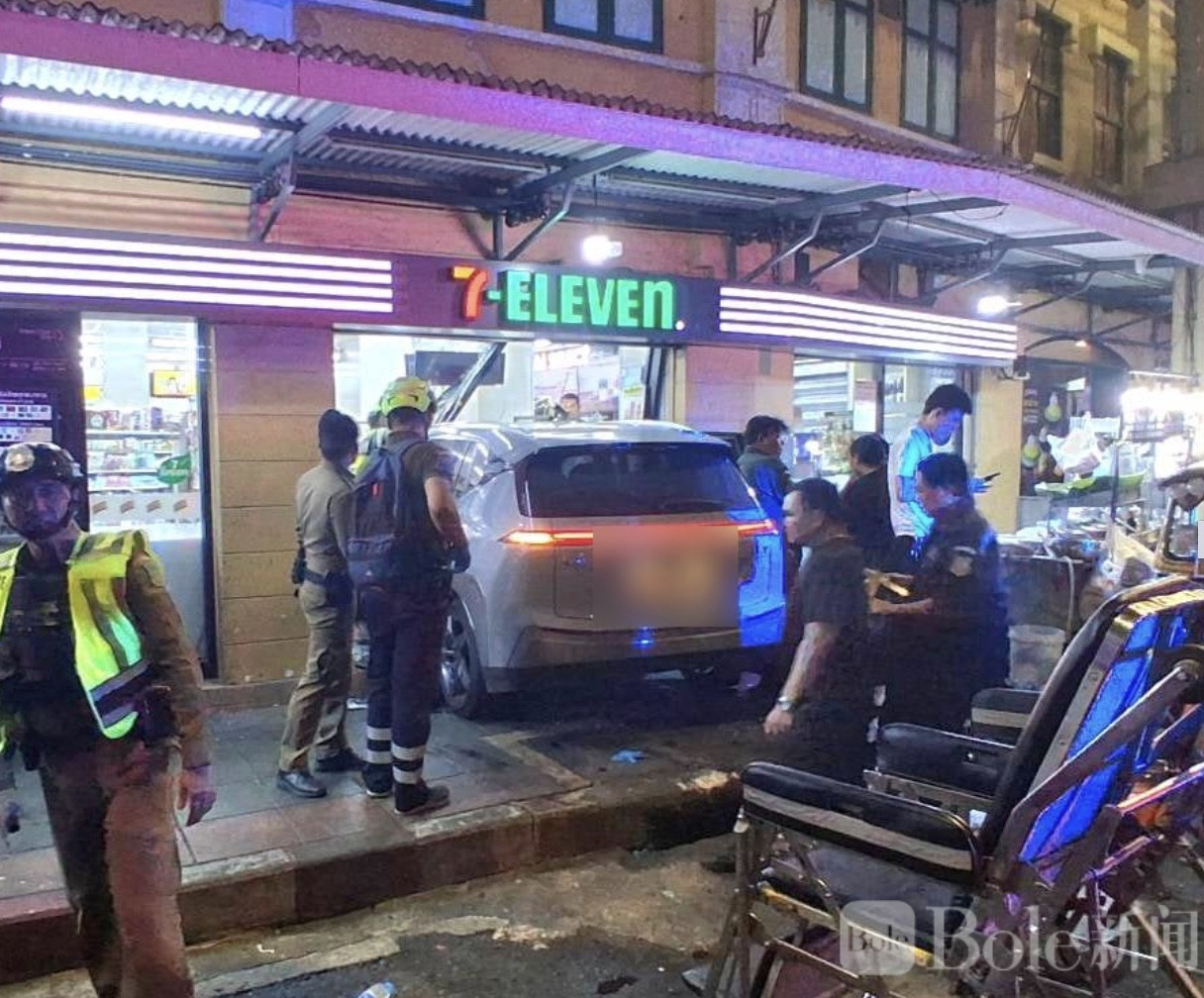 Bole新闻专讯:4月1日,记者报道称,昨晚深夜曼谷街头惊险一幕发生,一名57岁的女司机驾驶白色电动车失控,先后撞倒小吃店、三轮车,最终冲入便利店,造成8人受伤,包括多名当地居民和外国游客。事故发生在13巷环岛附近地区,引发现场恐慌。