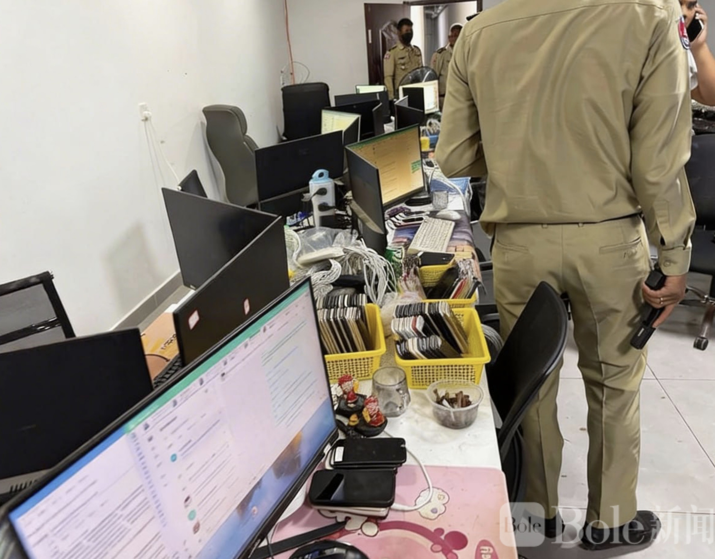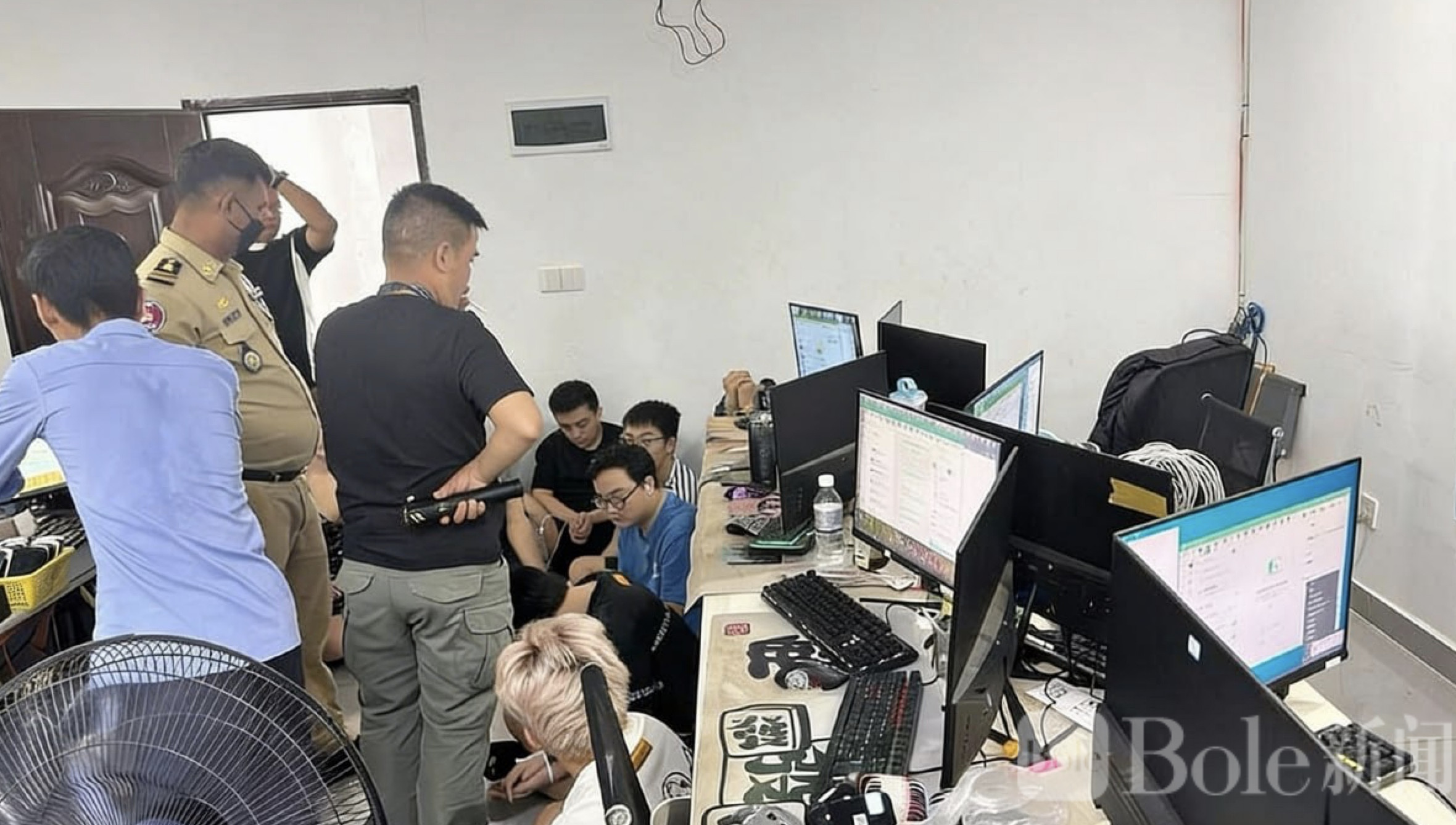 Bole新闻专讯:柬埔寨持续加码打击网络诈骗行动,金边警方近日展开突击行动,在森速区一处涉嫌从事电信诈骗的据点实施搜查,当场逮捕20名外籍人员,其中包括19名中国公民及1名吉尔吉斯斯坦籍女子。