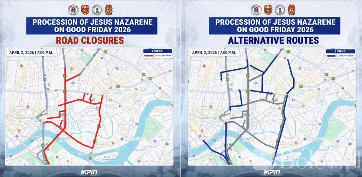 Bole新闻专讯:随着圣周临近,马尼拉公共信息办公室(PIO)发布通告,提醒市民及驾驶者注意部分道路将因纳撒勒耶稣圣像游行而临时封闭,并提供多条绕行路线以避免交通拥堵。