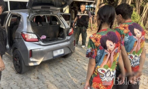 Bole新闻专讯:泰国素攀武里府警方近日成功抓获一名涉嫌毒品与诈骗的逃犯,同时还逮捕了其女友。令人意外的是,这对情侣竟然同穿情侣装开车上路,试图躲避警方追捕。