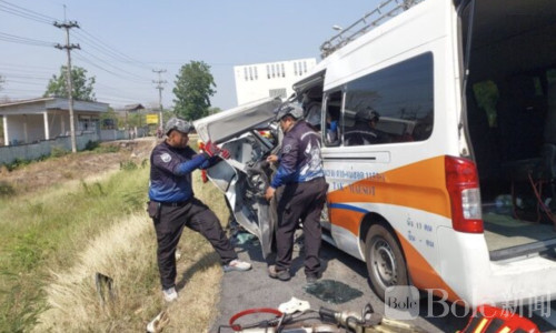 Bole新闻专讯:4月6日下午约14:40,泰国塔克府塔克至美索线路的一辆客运面包车在行驶途中,不幸追尾一辆停在路边的18轮挂车,造成包括司机在内的5人当场死亡,多人受伤,现场情况十分惨烈。