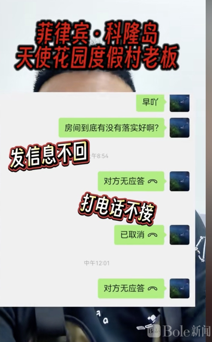 当事人此前在网上处理机票预订事宜时,通过菲律宾本地旅游社群,接触到了一名自称 “菲律宾科隆岛天使花园度假村老板” 的男子。同在一个圈层,看着对方账号里日常更新的酒店运营内容、行业资源动态,一副在本地扎根多年、有头有脸的经营者模样,再加上张口闭口 “都是同胞,肯定给你安排得明明白白”,常年在海外奔波的当事人,对着这张同胞面孔,卸下了大半防备。