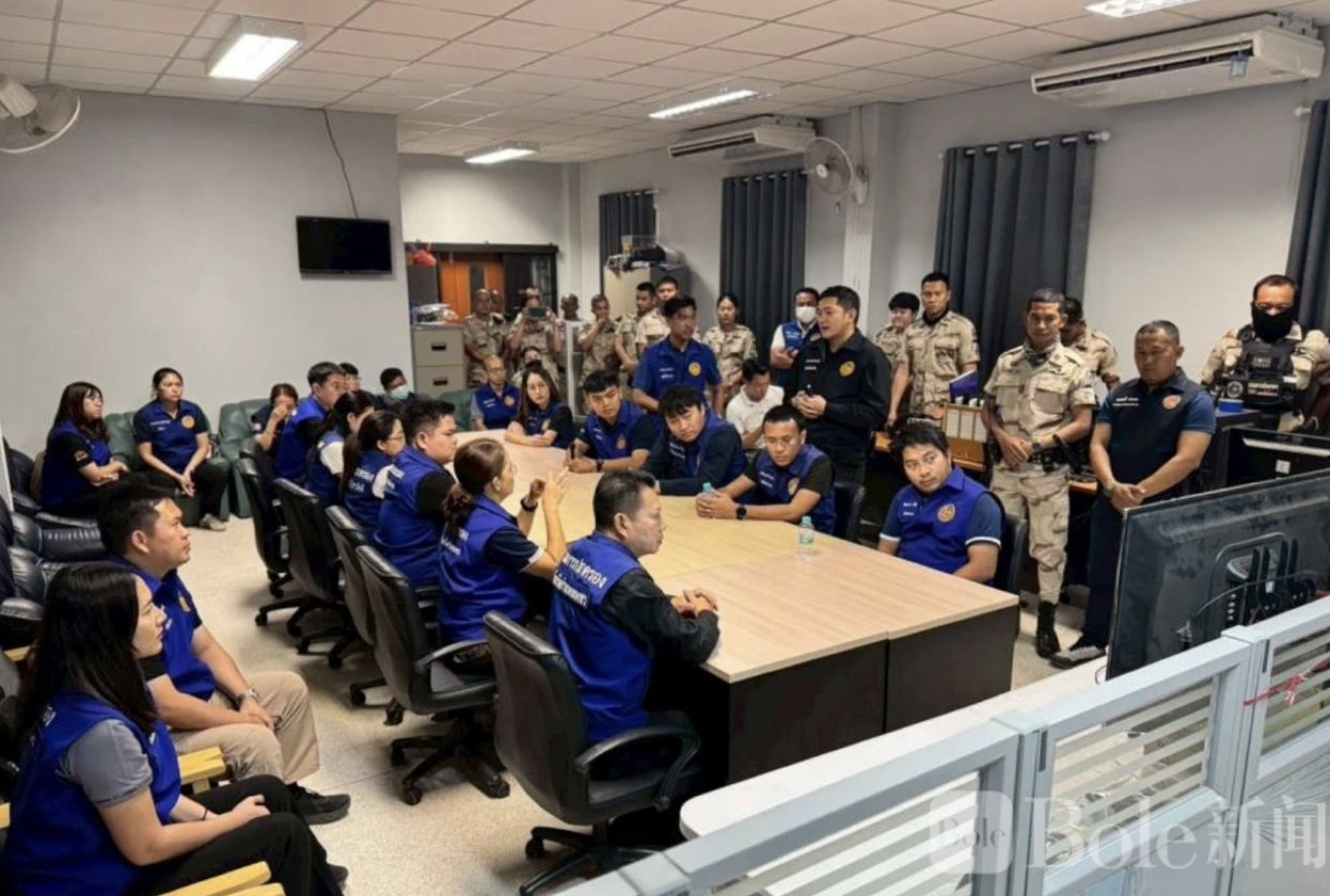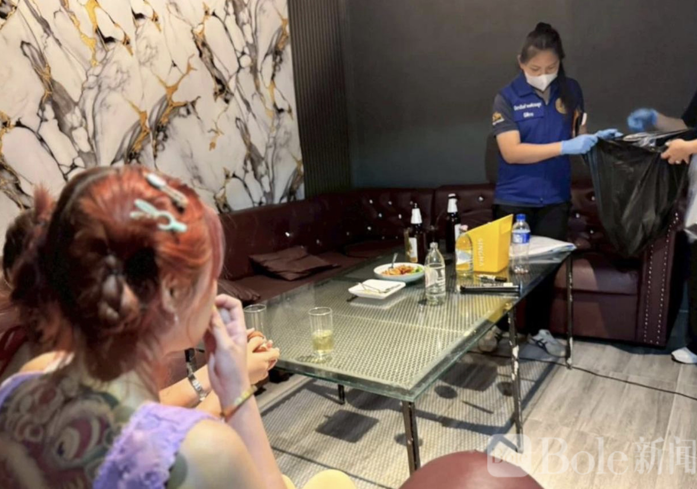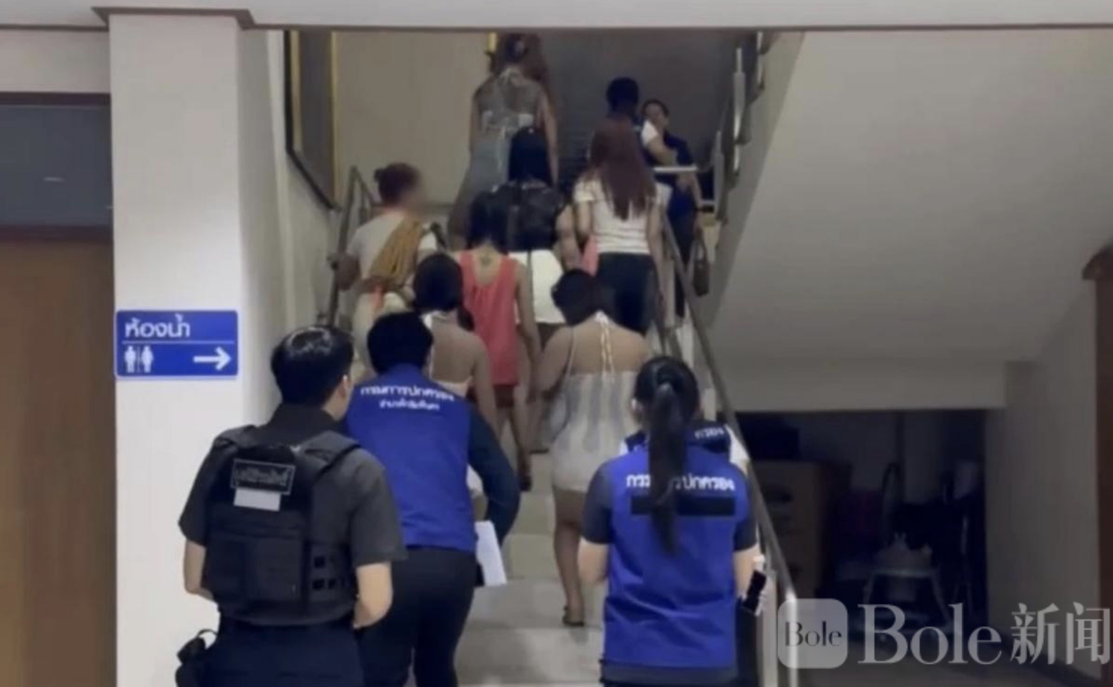 Bole 新闻专讯:泰国甘烹碧府在 4 月 8 日晚间至 9 日凌晨展开 “查康劳行动 4 号”,由多部门联合执法,突击查处当地一家人气较高的无证娱乐场所,当场查获涉及未成年人非法服务及人口贩卖相关嫌疑案件。