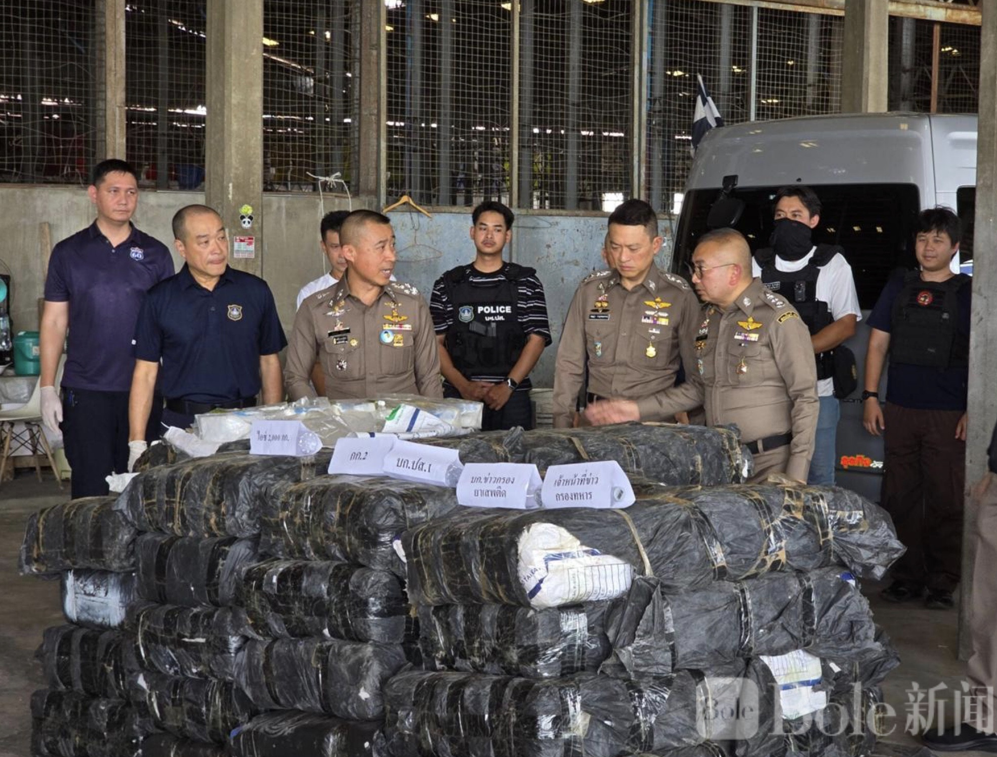 Bole新闻专讯:2026年4月10日,泰国禁毒部门联合军方展开专项行动,成功破获一起特大毒品走私案件,当场查获约1970公斤冰毒,并逮捕4名涉案嫌疑人。