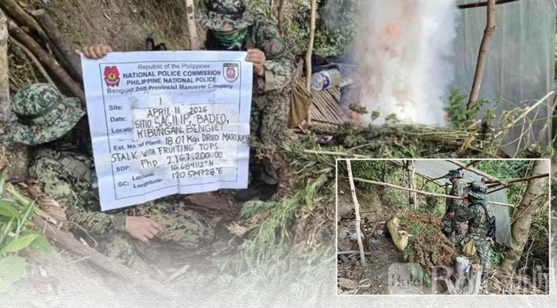 Bole新闻专讯:菲律宾国家警察近日通报,在科迪勒拉行政区展开为期一周的集中扫毒行动中,执法人员成功铲除并销毁总价值约2280万比索的大麻植株,同时抓获一名被列为“高价值目标”(HVI)的毒品嫌疑人,行动成果显著。